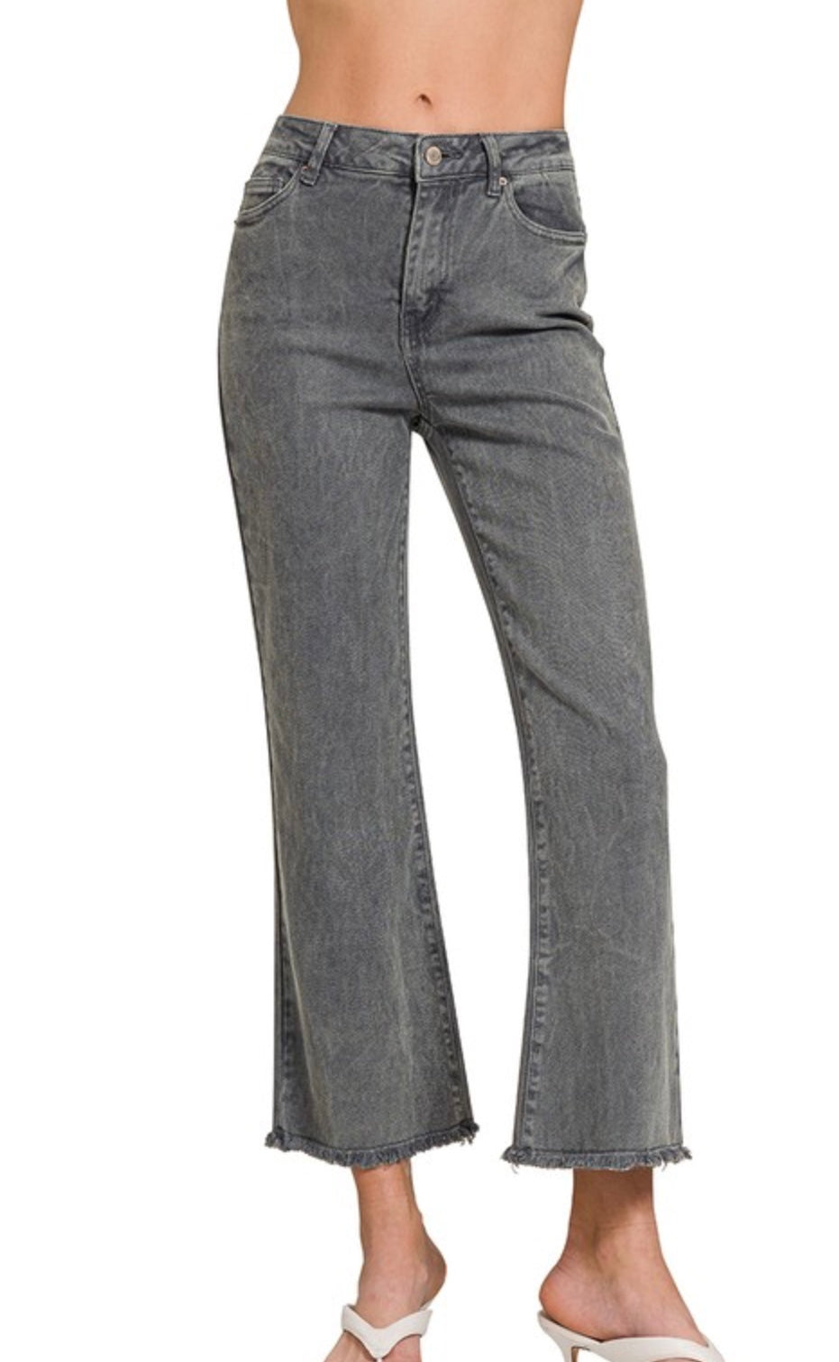 Acid Washed High Waisted Frayed Jeans