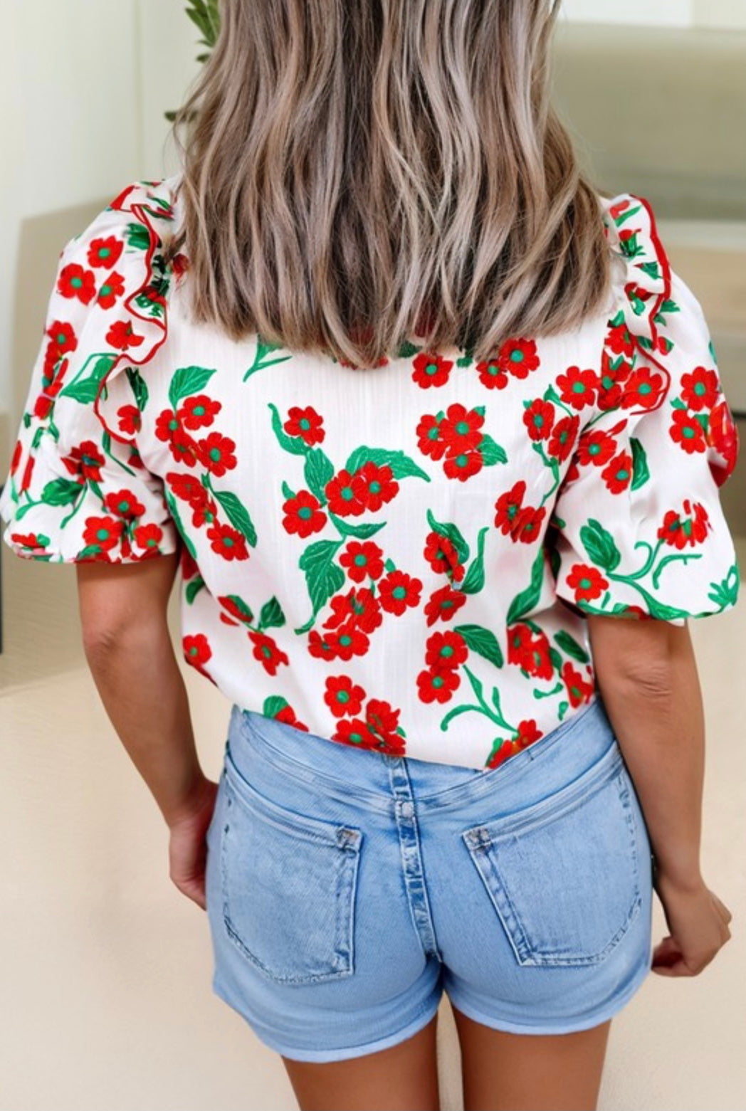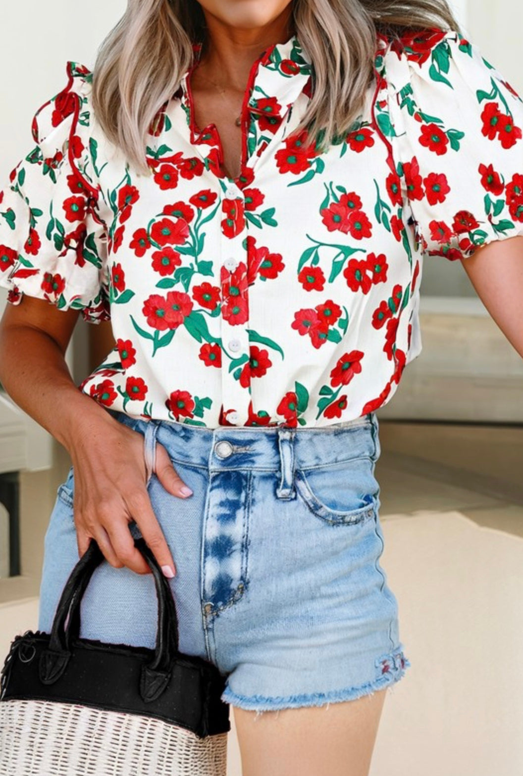 Red and White Blouse