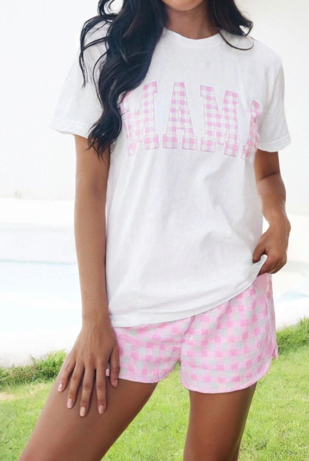 Fun 2pc Summer set. Short sleeve white tee with elastic waist shorts.