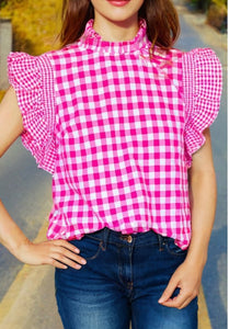 Checkered Ruffle Trim Top