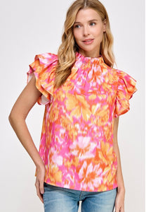 Double Ruffle Sleeve Floral Print Summer Blouse