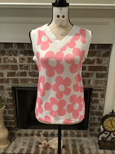Pink Cute Flower Knit V-Neck Top