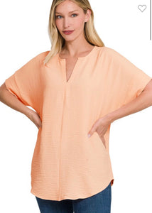 Peach Woven Split Neck Top A3