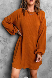 Orange Empire Waist Long Sleeve Dress