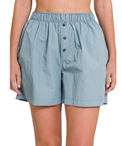 Windbreaker Elastic Waist Front Button Shorts